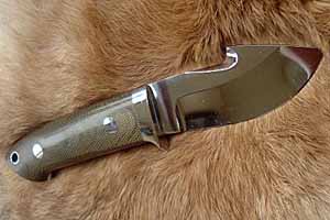 背中の部分で獲物の皮を内蔵に傷つけずに